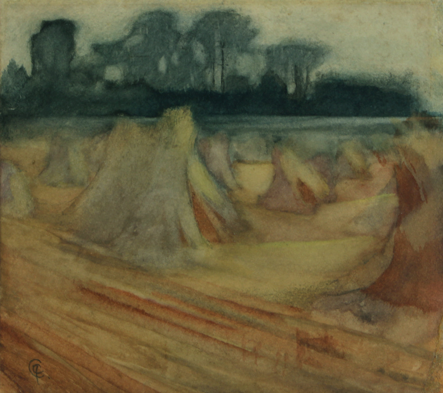 Dusk in the Cornfieldwatercolour, signed with monogram lower leftSize: 7 h x 8 w (with frame 13 h x 12 3/4 w)J19370
