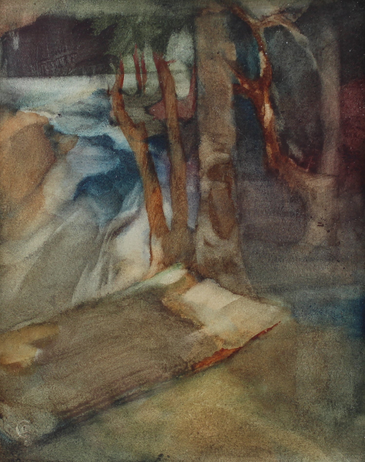 On the Edge of the Lakewatercolour, signed with monogram lower leftSize: 7 1/4 h x 5 1/4 w in(with frame 15 h x 12w)J19308