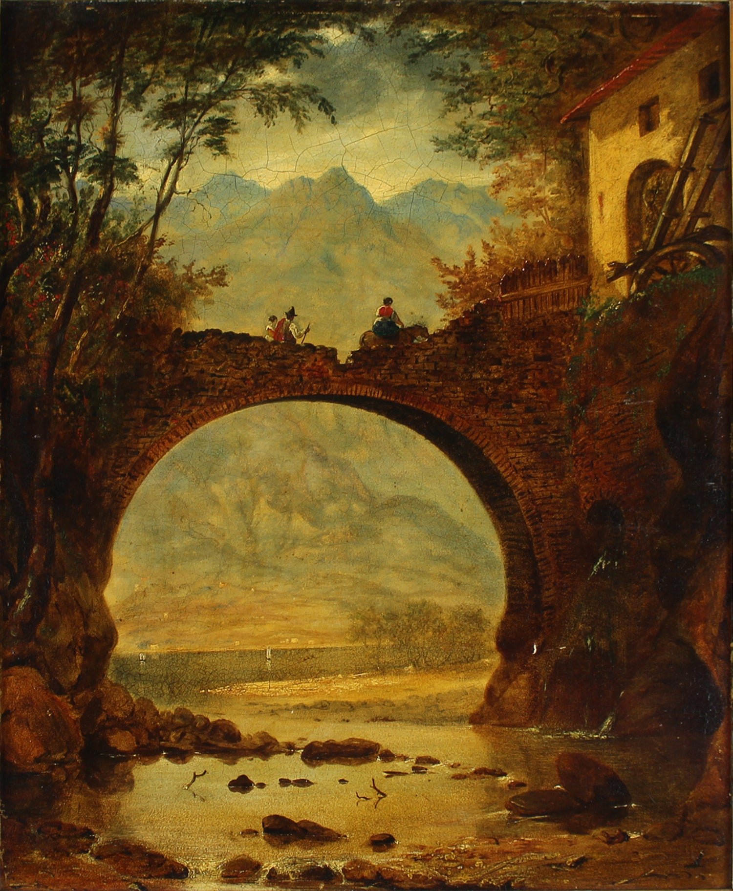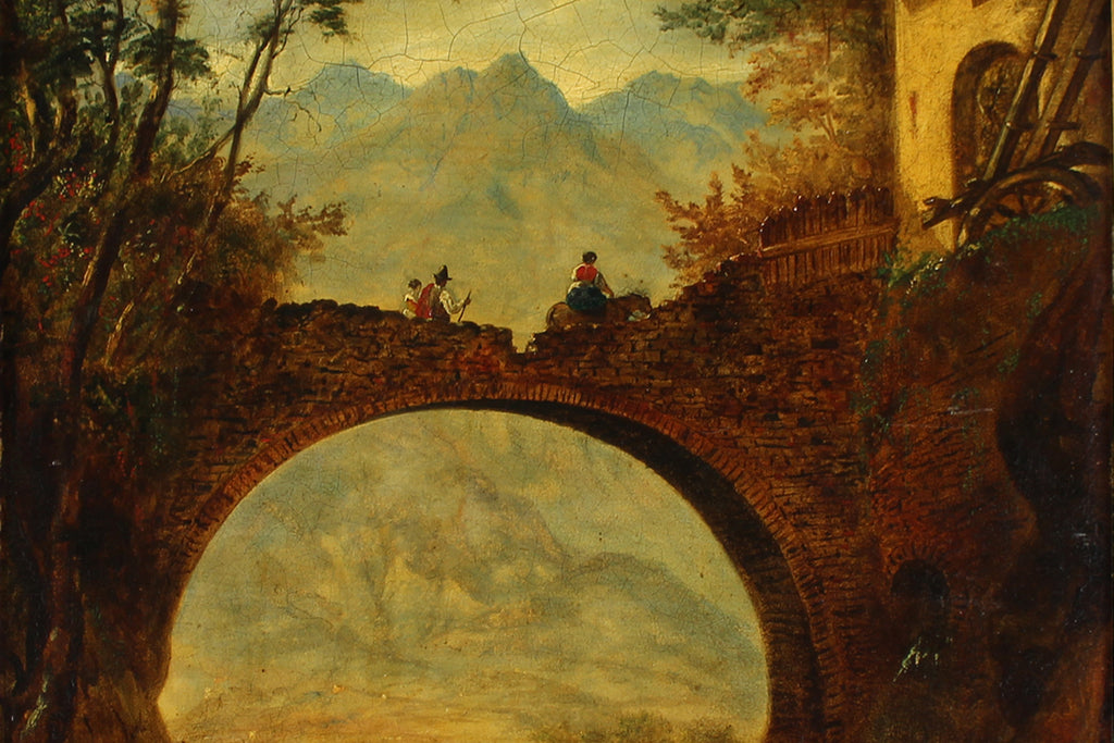 Figures on Archwayoil on canvasSize: 22 1/2 h x 18 1/2 w in (with frame 25 h x 29 w)J19271